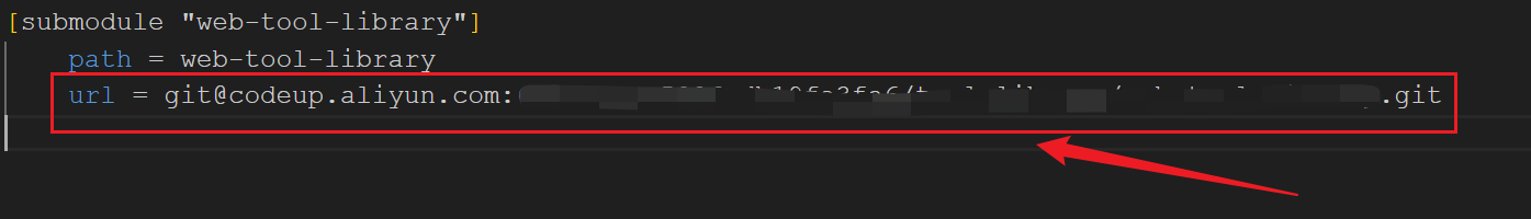 3.在项目根目录下打开 .gitmodules 文件,修改子仓库的远程地址: