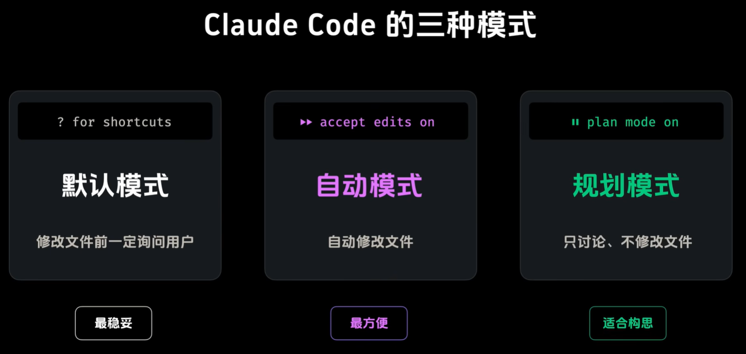 开启自动模式后, claude code 会自动修改或写入文件,而不经过用户同意;但在执行终端命令或安装依赖时仍然会寻求用户同意,因为终端命令更危险;要想任何情况下都让 claude code 自动执行而不询问用户,就要修改 claude code 配置文件,或在启动 claude code 时加上 --dangerously-skip-permissions 选项;开启 --dangerously-skip-permissions 选项后,claude code 就会完全放飞,做任何事情都不再征求用户同意,这在理论上会有小一定的风险(风险一般较小)。