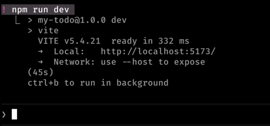 按 contr + b 可将这个命令启动的服务放入到后台运行,这样就可以继续当前对话;如下图所示,对话下方会提示当前有 1 个后台任务正在运行;