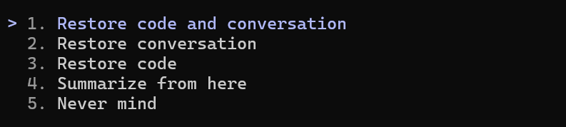 - Restore code 撤销文件更改,但对话历史保持不动;